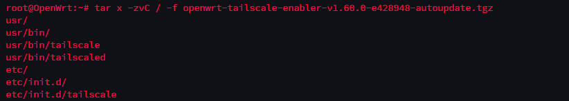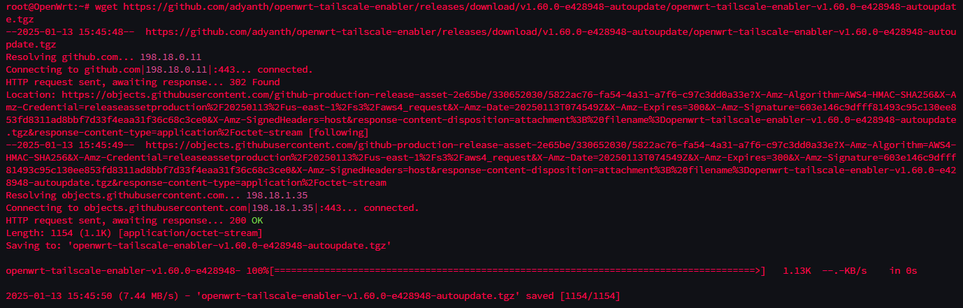 1 | wget <https://github.com/adyanth/openwrt-tailscale-enabler/releases/download/v1.60.0-e428948-autoupdate/openwrt-tailscale-enabler-v1.60.0-e428948-autoupdate.tgz> |
